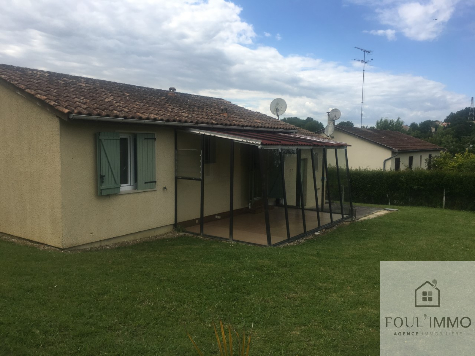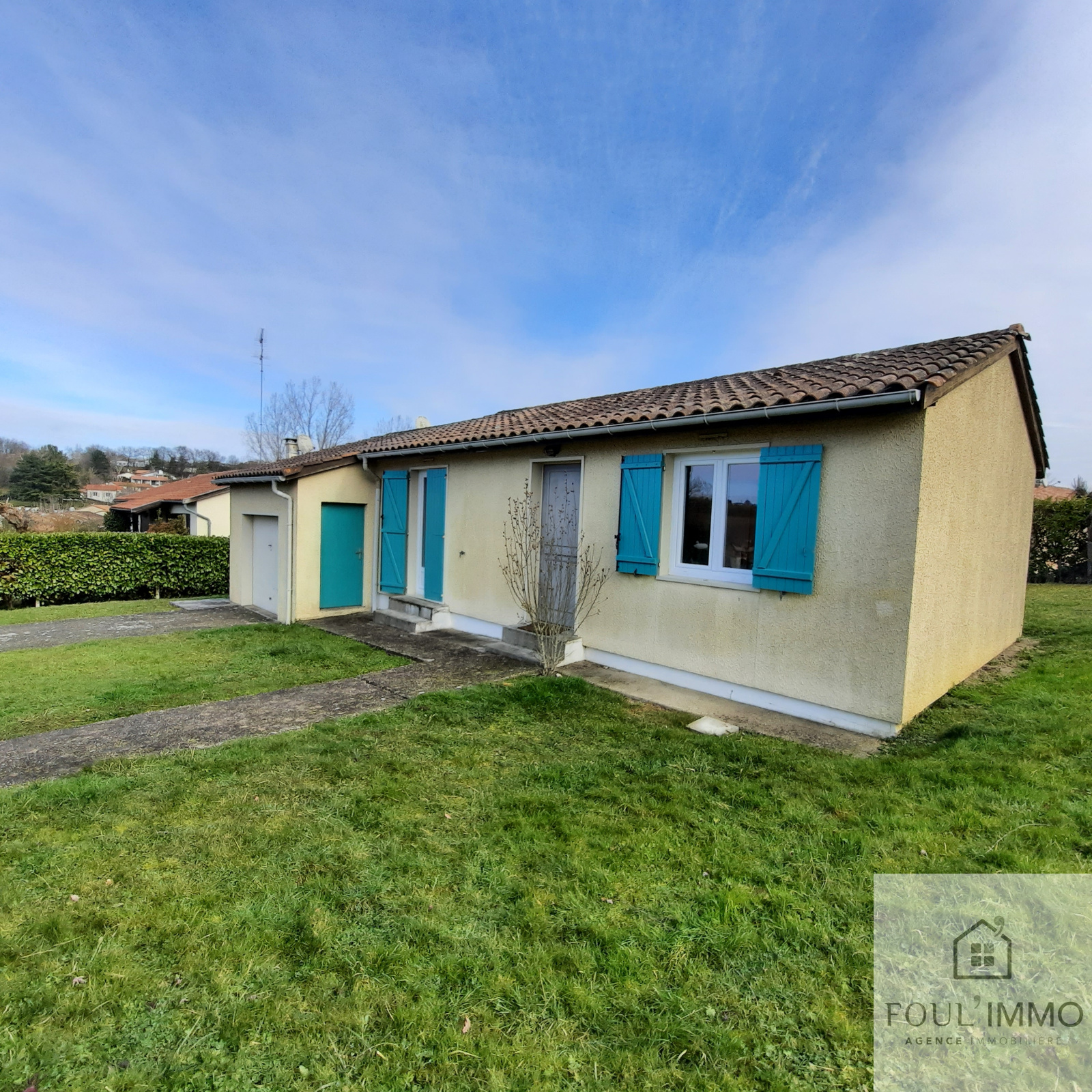 L'agence FOUL'IMMO, vous propose en exclusivité, une maison de type T3 d'une surface de 80 m² environ. Cette maison est située à proximité de toutes les commodités : écoles, commerces, transports. Elle se compose dune pièce de vie avec coin cuisine d'une surface de 26 m², 2 chambres avec placards d'une surface de 9 et 10 m², une salle d'eau, un wc séparé, une buanderie, un garage , une grande véranda, le tout sur un terrain de 600 m² environ .