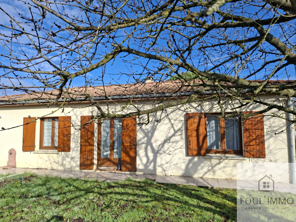 L'agence fOULIMMO vous propose, en exclusivité, une maison de plain pieds dans un secteur calme et résidentiel composée d'une entrée, un séjour avec insert bois, une cuisine indépendante aménagée et équipée, deux chambres, une salle d'eau et un wc indépendant. Un garage attenant complète ce bien construit sur une parcelle de terrain agréable et arborée. Maison en bon état, double vitrage, assainissement collectif.