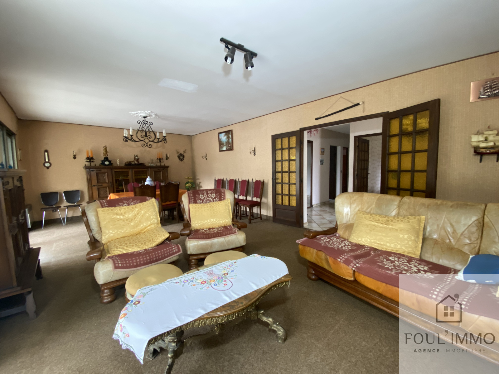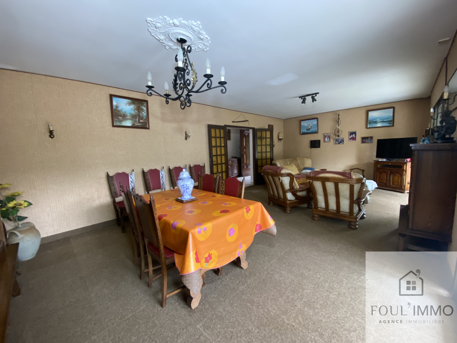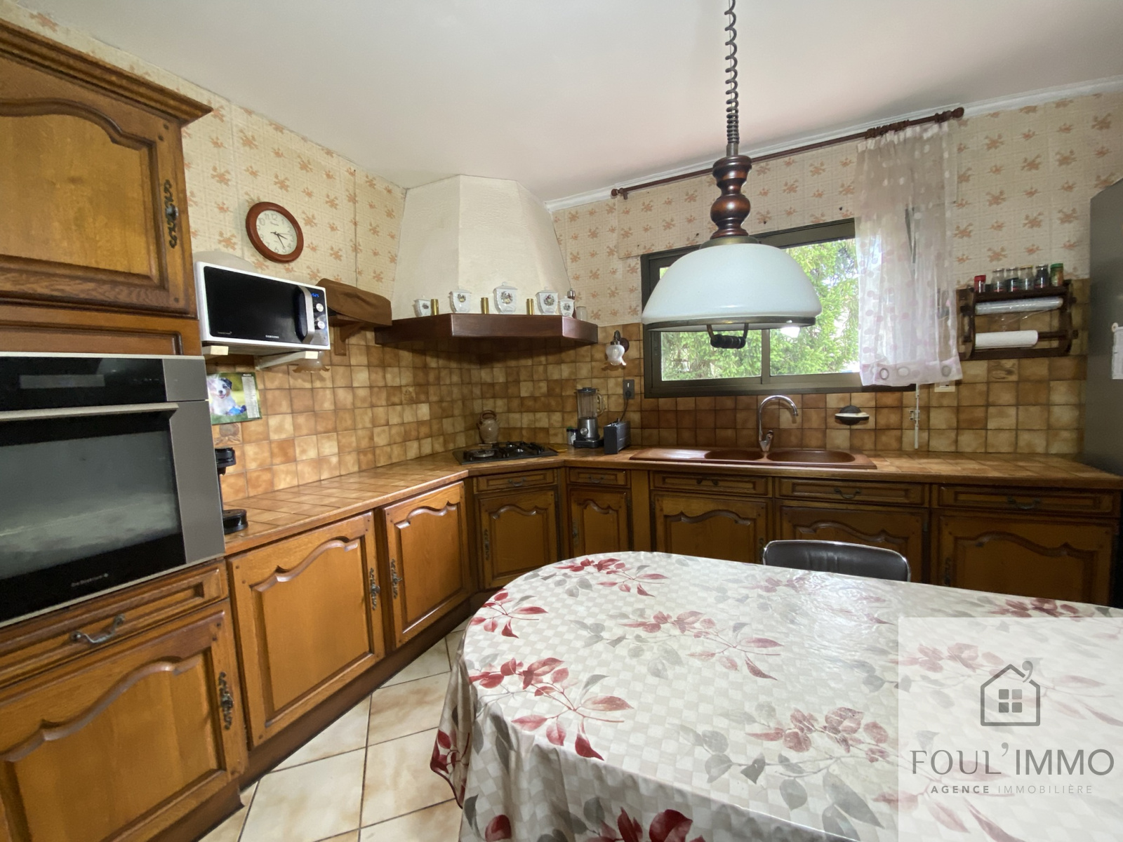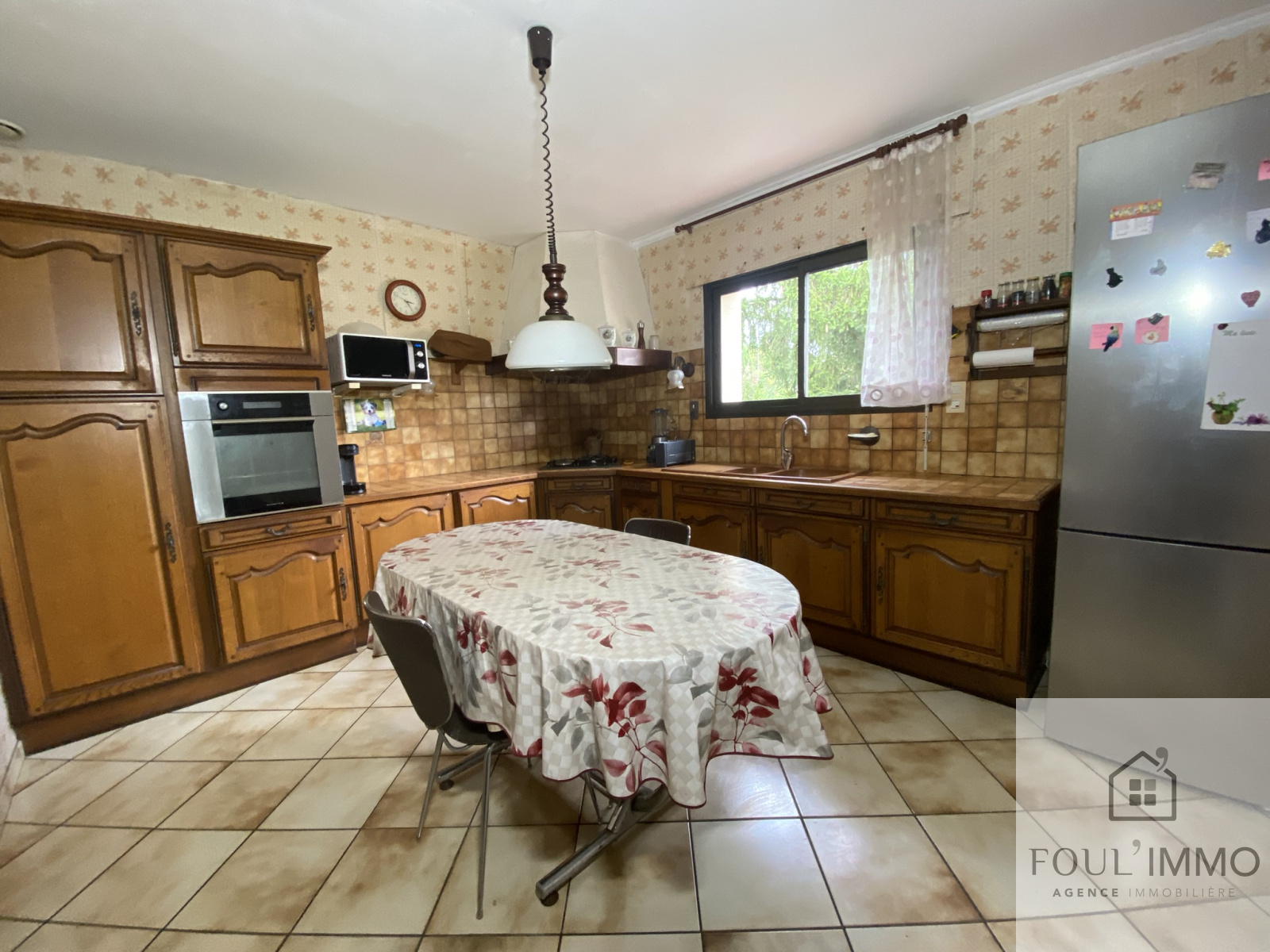 De plus, une cuisine en chêne typique des années 1986 en excellent état vient compléter le coin jour.