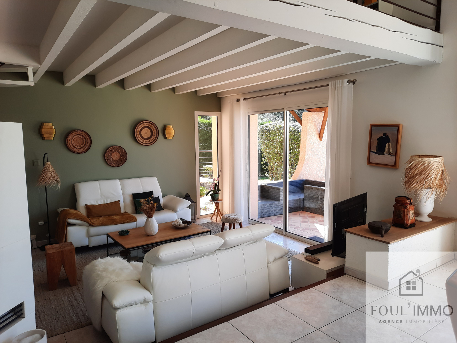 Laissez vous charmer par son agréable salon cathédrale comprenant une mezzanine d'environ 30 m² créant ainsi un espace détente (bibliothèque, atelier ou bureau).
