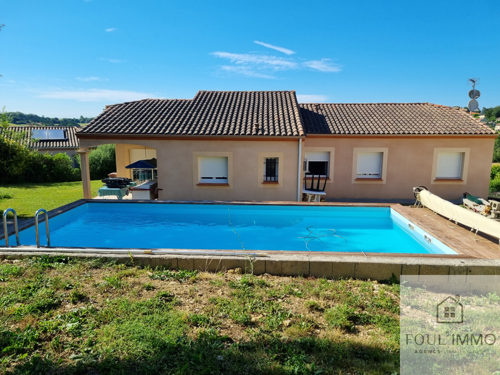 L'agence FOULIMMO vous propose une maison en très bon état située dans un quartier calme et résidentiel de la commune de FOULAYRONNES. Cette maison se compose d'une entrée, une vaste pièce de vie avec cuisine semi-ouverte aménagée et équipée, cellier, cinq chambres dont une suite parentale avec salle d'eau, une deuxième salle d'eau et 2 wc. Les chambres sont équipées de placards. La pièce de vie et la cuisine ont un accès direct sur la terrasse qui vous permettra de profiter du jardin et d'un accès facile à la piscine. Le sous-sol se compose d'une partie buanderie et d'un double garage.