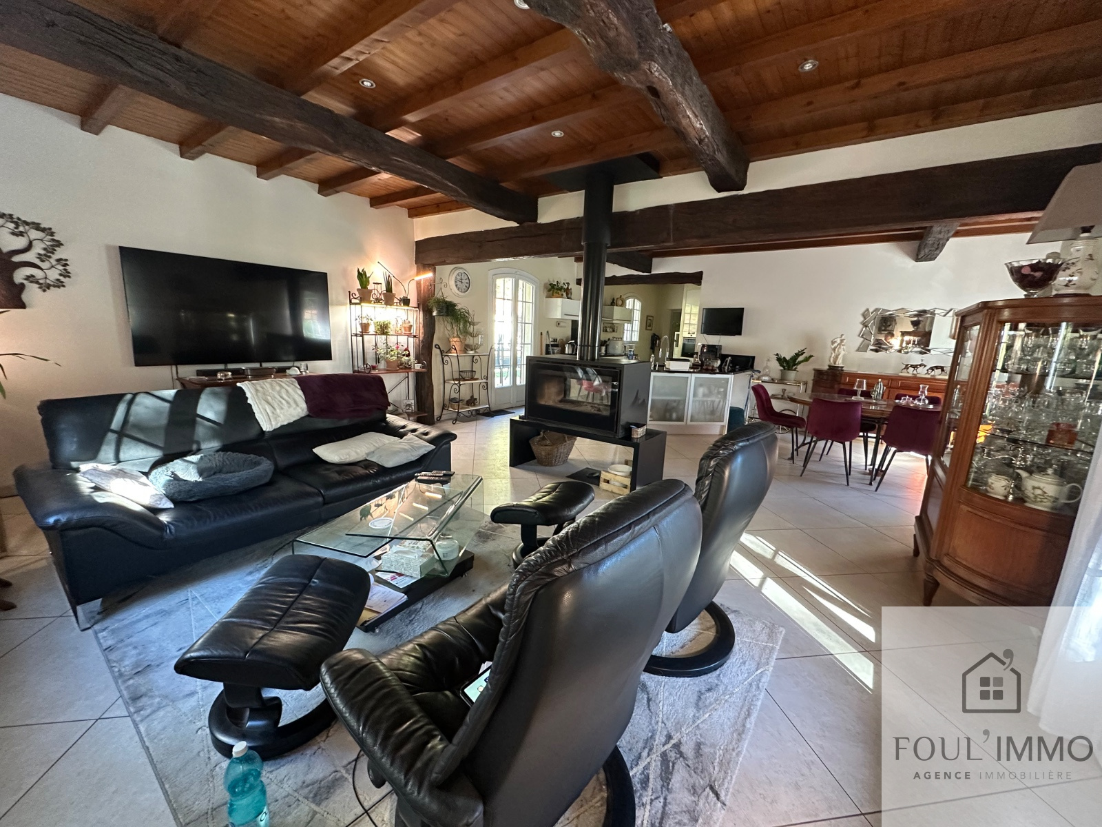 Cette maison de caractère dotée de poutres apparentes et bâtie en 1985 sur vide sanitaire vous offre de beaux volumes et de nombreux espaces de rangements. Une pièce de vie chaleureuse et traversante d'environ 65 m² composée d'une cuisine aménagée et équipée ouverte le salon agrémenté d'un poêle à bois contemporain double face. La partie nuit dispose de 3 chambres ainsi qu'une salle de bains spacieuse.