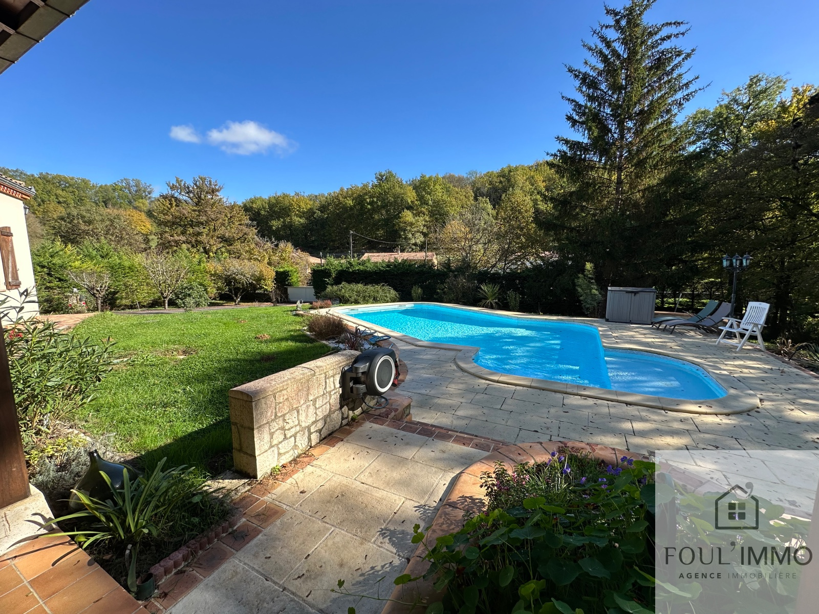 COUP DE COEUR : Sur un parc fleuri et arboré de 8 500 m², maison de 150 m² avec piscine, double garage, double carport et un studio indépendant !