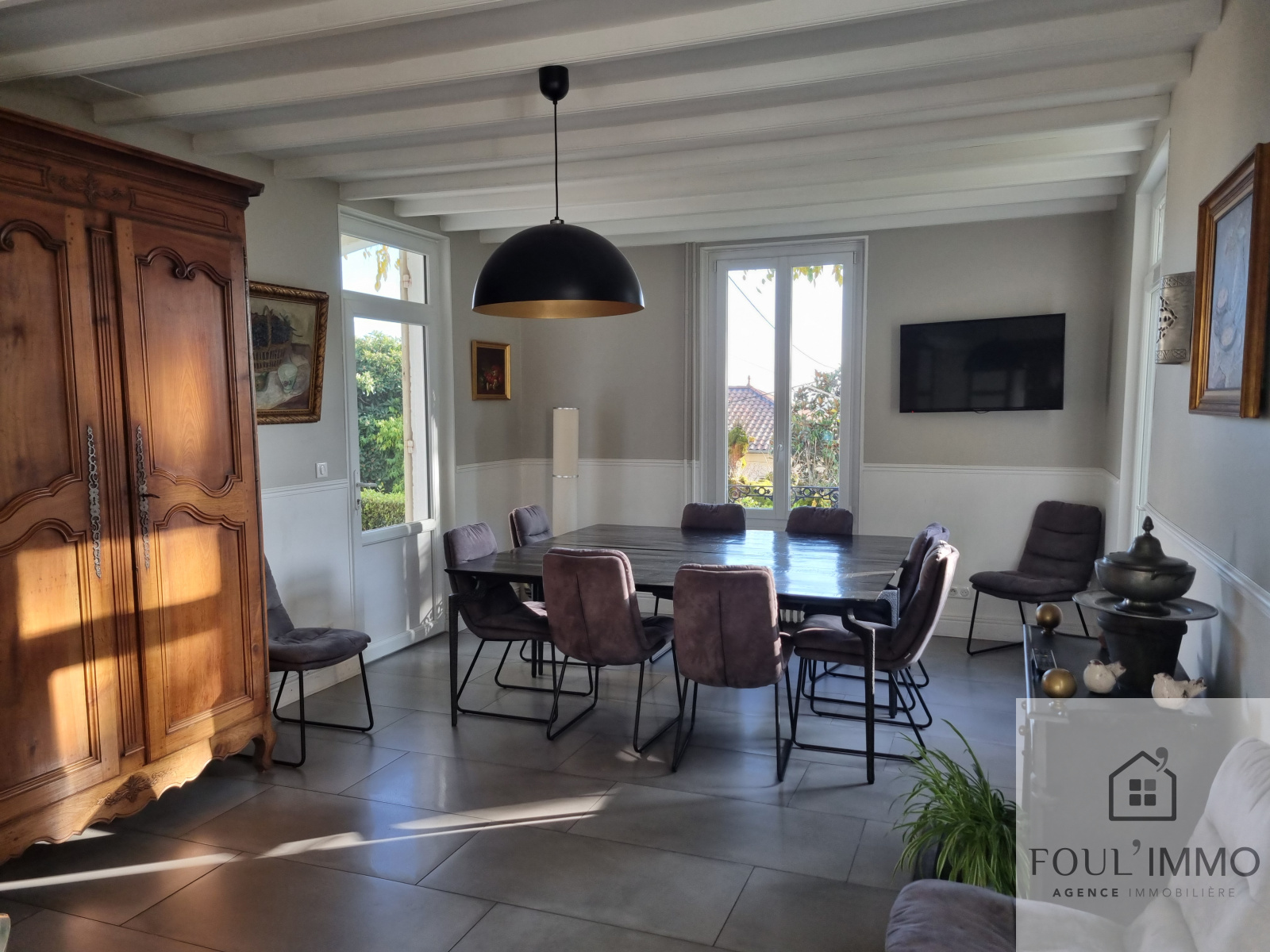 L'agence FOULIMMO vous propose, à deux minutes du centre ville, sur 2 500 m² de terrain, une vaste maison familiale avec une entrée, une spacieuse pièce de vie avec sa cuisine ouverte et arrière cuisine, un salon très chaleureux. Au premier étage un pallier lumineux dessert deux suites. La première se compose de deux chambres avec salle de bains et dressing. La seconde d'une chambre avec dressing et salle d'eau. Buanderie et WC. Au second étage, vaste palier desservant quatre chambres dont trois avec salle d'eau. 3 garages fermés. Au dessus, un appartement T2 de 49 m² comprenant un séjour avec cuisine équipée, une chambre et une grande salle de bains. Le terrain est en position dominante et offre une belle vue. Maison idéale pour une famille nombreuse. Une activité de chambre d'hôte est envisageable. Venez réaliser vos projets dans cette belle demeure!