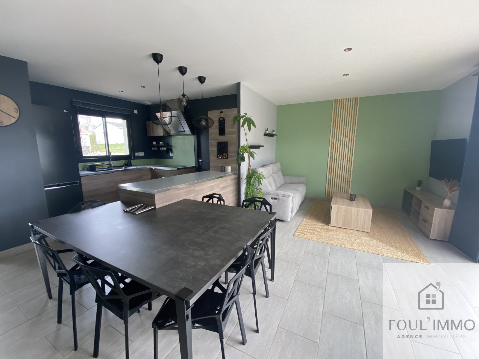 Vous serez conquis dès l'entrée de la maison donnant sur la belle pièce de vie traversante et lumineuse d'environ 40 m² comprenant une cuisine aménagée et équipée ouverte sur le salon séjour.